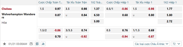 Tip kèo Châu Á full trận Chelsea vs Wolves