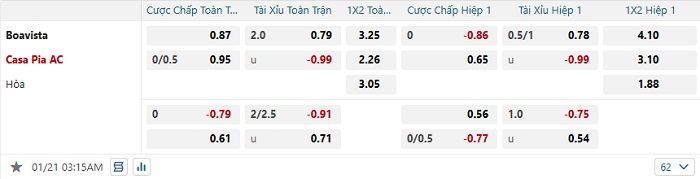 - Dự đoán tỷ số hiệp 1: Boavista 0 – 0 Casa Pia