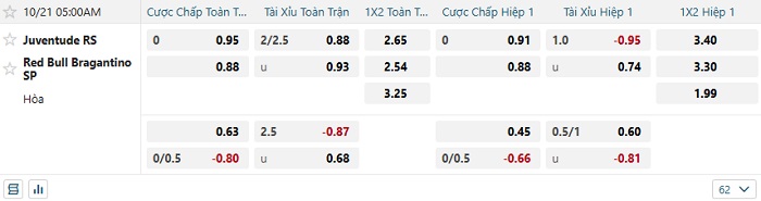 Tip kèo Châu Á hiệp 1 Juventude vs Bragantino