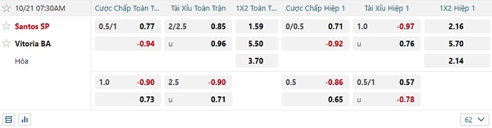 Tip kèo Châu Á full trận Santos vs Vitoria