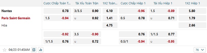 Tip kèo Châu Á hiệp 1 Nantes vs PSG