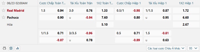 Tip kèo Châu Á hiệp 1 Real Madrid vs Pachuca