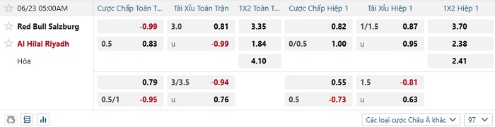 Tip kèo Châu Á full trận Salzburg vs Al Hilal