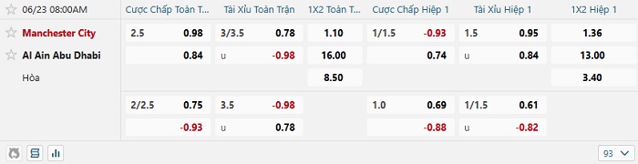 • Dự đoán tỷ số hiệp 1: Man City 2 – 0 Al Ain