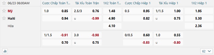 Tip kèo Châu Á hiệp 1 Mỹ vs Haiti