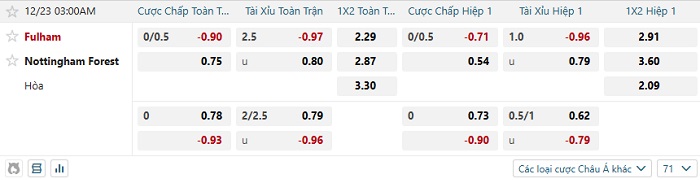 Tip kèo Châu Á full trận Fulham vs Nottingham
