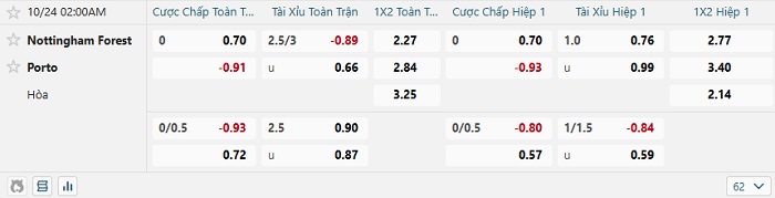 Tip kèo Châu Á full trận Nottingham vs Porto
