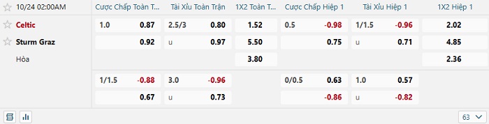 Tip kèo Châu Á full trận Celtic vs Sturm Graz