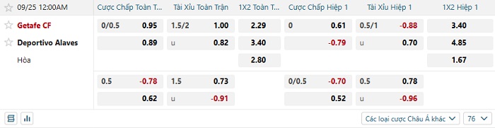 Tip kèo Châu Á full trận Getafe vs Alaves