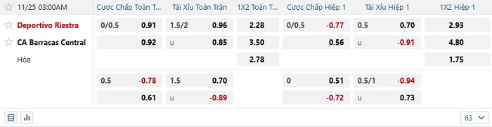 Tip kèo Châu Á full trận Deportivo Riestra vs Barracas Central