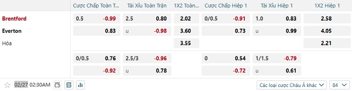 Tip kèo Châu Á full trận Brentford vs Everton