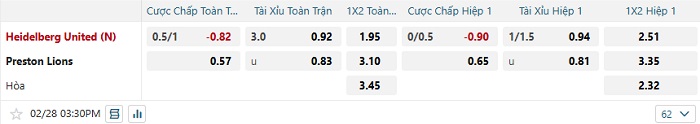 Tip kèo Châu Á full trận Heidelberg United vs Preston Lions