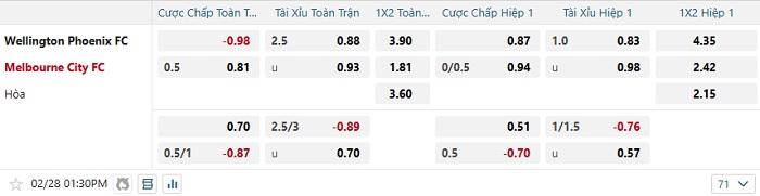 Tip kèo Châu Á hiệp 1 Wellington Phoenix vs Melbourne City