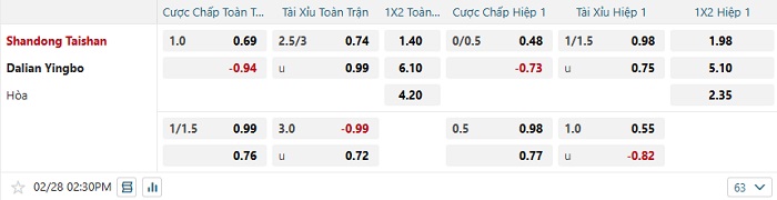 Tip kèo Châu Á hiệp 1 Shandong Taishan vs Dallan Yingbo