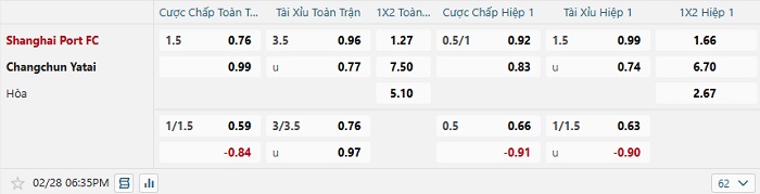 Tip kèo Châu Á hiệp 1 Shanghai Port vs Changchun Yatai