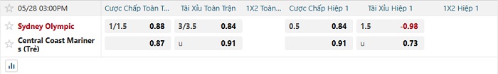 Tip kèo Châu Á hiệp 1 Sydney Olympic vs Central Coast II