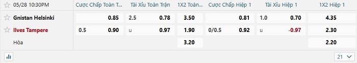 Tip kèo Châu Á hiệp 1 Gnistan Helsinski vs Ilves Tampere