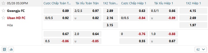 - Dự đoán tỷ số hiệp 1: Gwangju 0 – 0 Ulsan HD