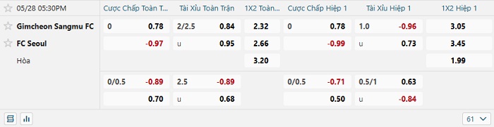 Tip kèo Châu Á hiệp 1 Gimcheon Sangmu vs FC Seoul