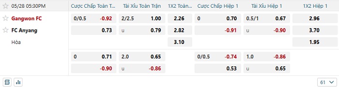 Tip kèo Châu Á full trận Gangwon vs Anyang