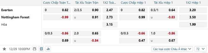Tip kèo Châu Á full trận Everton vs Nottingham