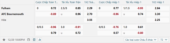 Tip kèo Châu Á full trận Fulham vs Bournemouth