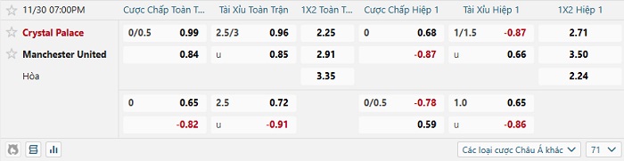 Tip kèo Châu Á hiệp 1 Crystal Palace vs Man United