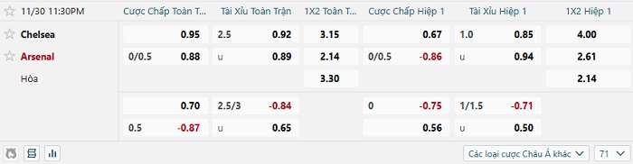 Tip kèo Châu Á hiệp 1 Chelsea vs Arsenal