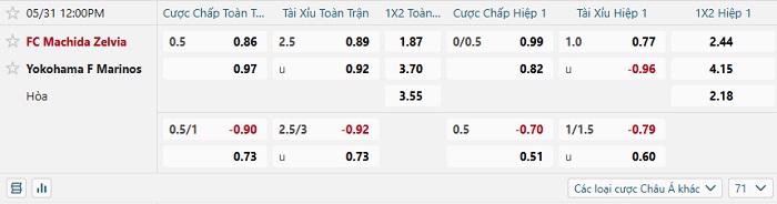 Tip kèo Châu Á hiệp 1 Machida Zelvia vs Yokohama F. Marinos