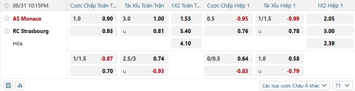 Tip kèo Châu Á full trận Monaco vs Strasbourg