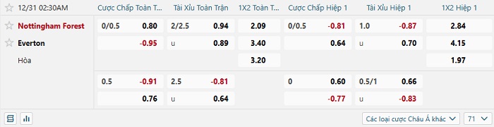 Tip kèo Châu Á hiệp 1 Nottingham vs Everton