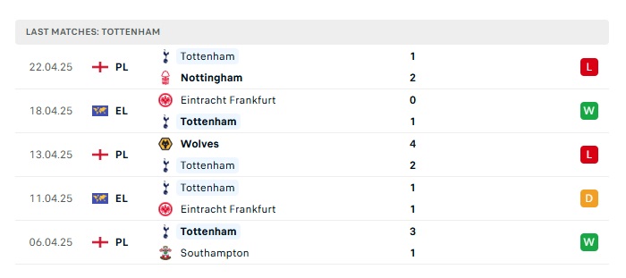 Phong độ gần đây Tottenham vs Bodo Glimt