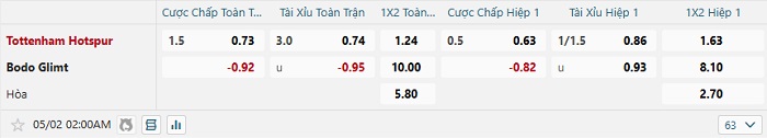 Bảng tỷ lệ kèo nhà cái Tottenham vs Bodo Glimt