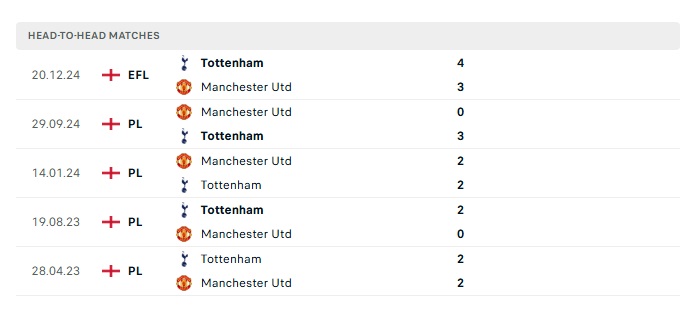 • Kèo tỷ số H2 Tottenham vs Man Utd: 1-1