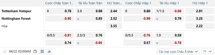 Bảng kèo bóng đá Tottenham vs Nottingham