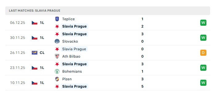 - Phong độ gần đây Slavia Praha