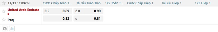 • Kèo tỷ số H1 UAE vs Iraq: 0-0