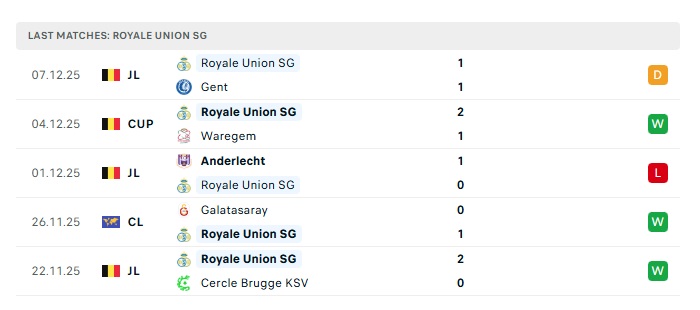 • Phong độ gần đây Union Saint-Gilloise