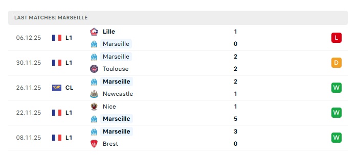 • Phong độ gần đây Marseille