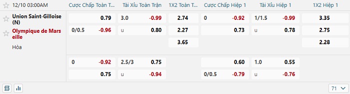 Bảng tỷ lệ kèo nhà cái Union Saint-Gilloise vs Marseille