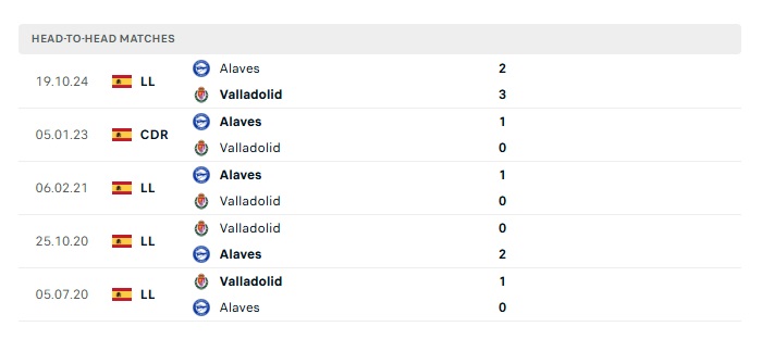 - Kèo tỷ số H2 Valladolid vs Alaves: 0-2
