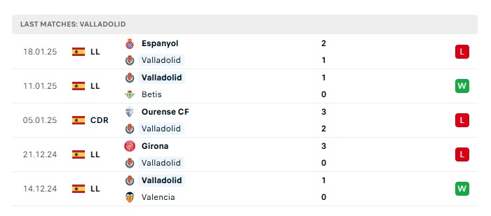 • Phong độ gần đây Valladolid