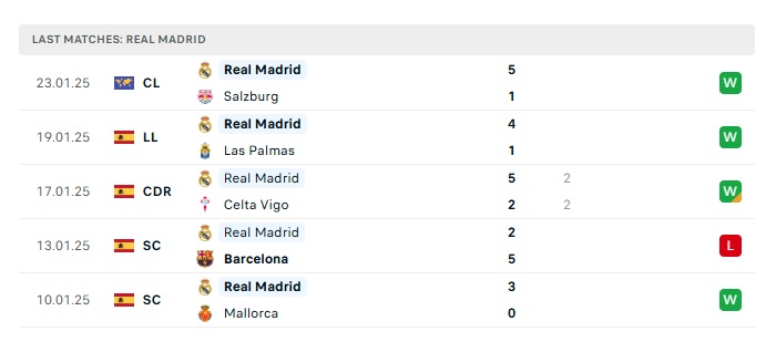 • Phong độ gần đây  Real Madrid