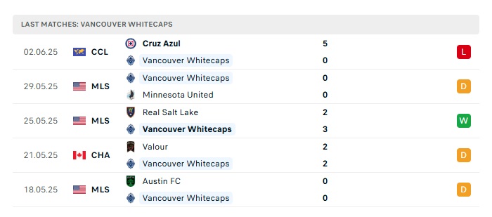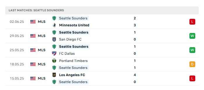 Phong độ gần đây Vancouver WC vs Seattle Sounders