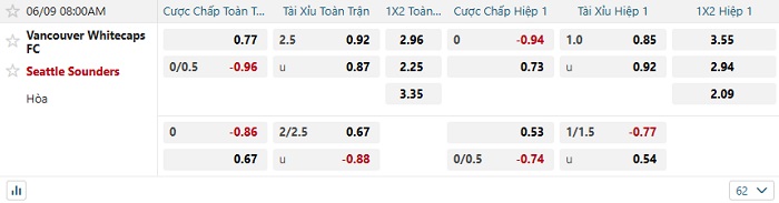 - Kèo tỷ số H1 Vancouver WC vs Seattle Sounders: 0-0