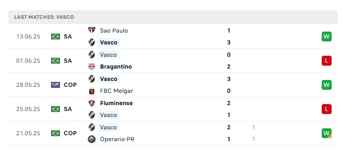 • Phong độ gần đây Vasco