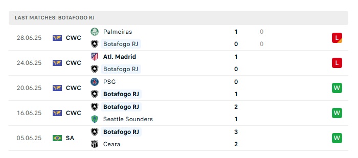 • Phong độ gần đây Botafogo/RJ