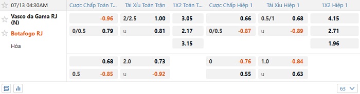 Soi kèo châu Á, kèo Vasco vs Botafogo/RJ