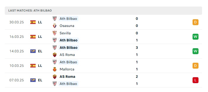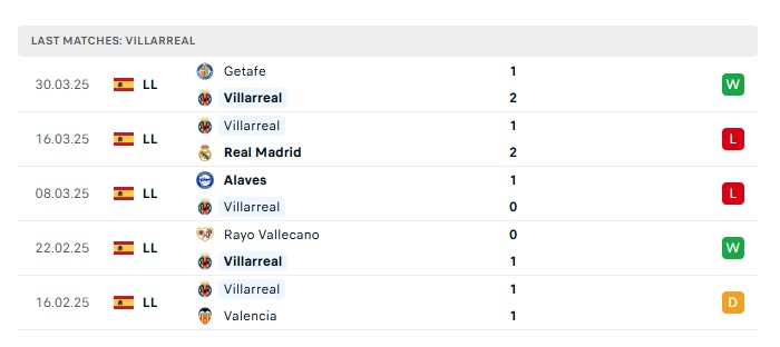 Phong độ gần đây Villarreal vs Athletic Bilbao