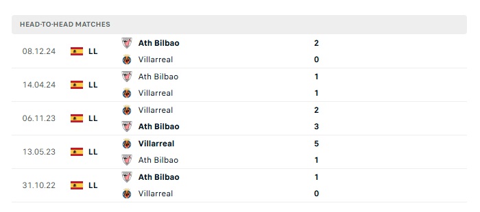 Lịch sử đối đầu Villarreal vs Athletic Bilbao
